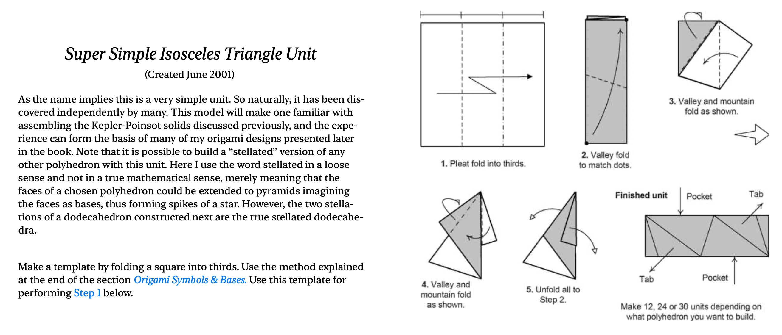 These instructions are from the book “Exquisite Modular Origami” by Meenakshi Mukerji (pages 24-27 in this link).