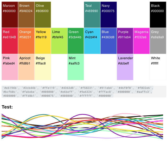 Don’t use them all together. Use black, some shade of gray, and one or two of the colors below. That’s more than enough. Source: xkcd color survey