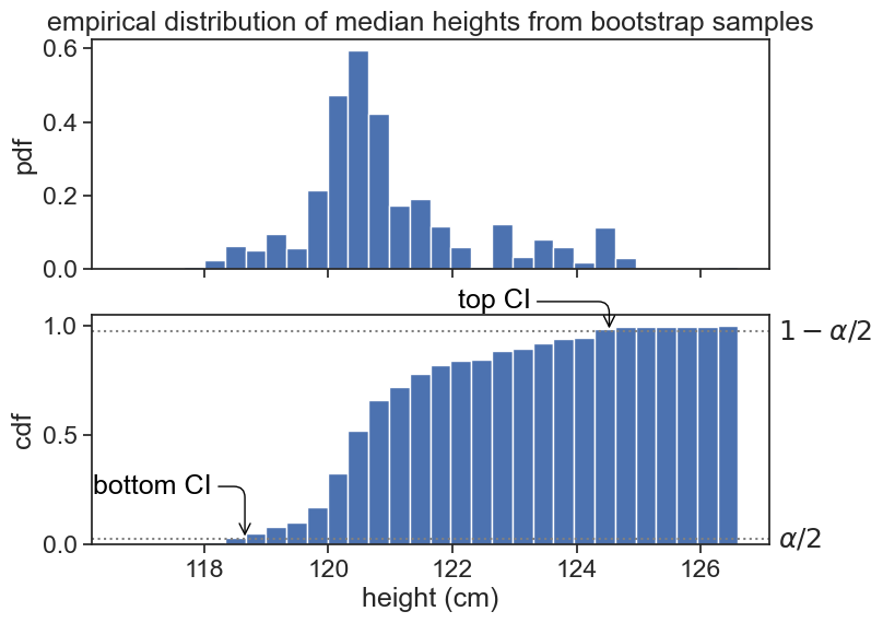 print(f"Bootstrap CI for median: {ci_bottom:.2f} - {ci_top:.2f} cm")