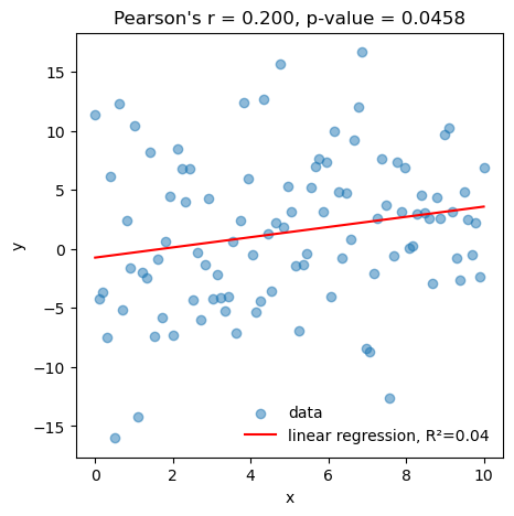 ax.plot(x, slope*x + intercept, color='red', label=f'linear regression, R²={r_value**2:.2f}')