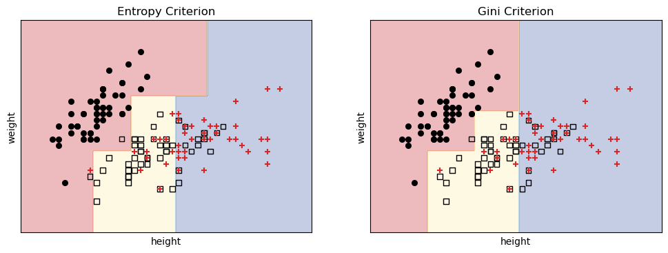 plot_decision_boundaries(ax[0], classifier_entropy, X, y, "Entropy Criterion")