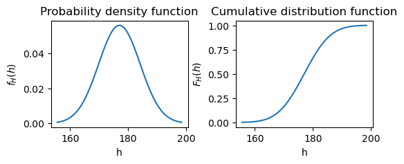 Let’s visualize both the PDF and the CDF for our random variable H.