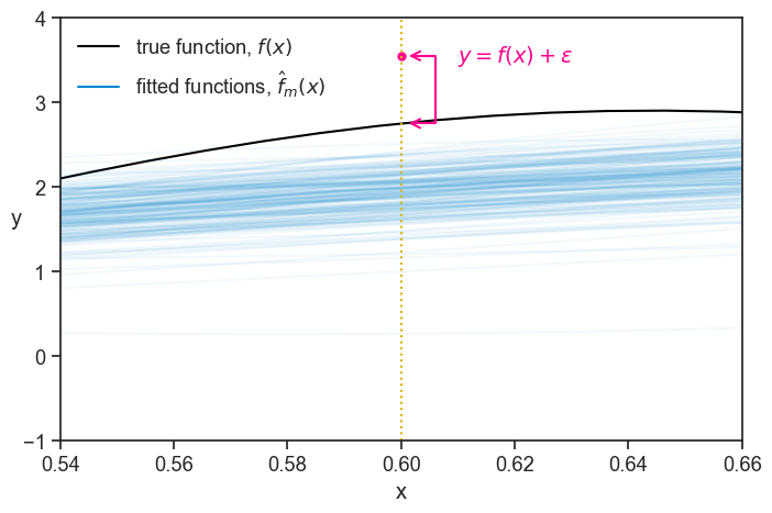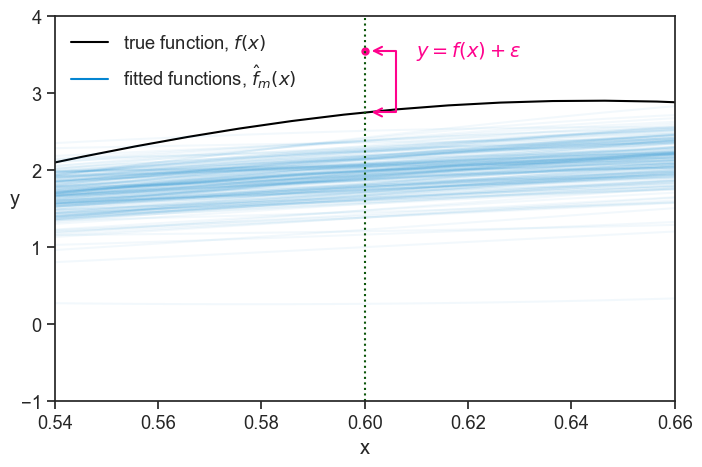 ax.text(test_point[0]+0.010, test_point[1], r"$y=f(x)+\epsilon$", color=pink, fontsize=14, ha="left", va="center")