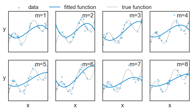 ax.plot([], [], color=blue, label=r"fitted functions, $\hat{f}_m(x)$")