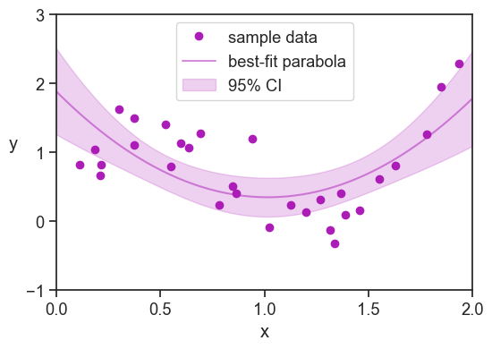 The sample data is best explained by a convex parabola (positive coefficient for the x^2 term), and the p-value for this coefficient is 0.0001 (against the null hypothesis of a zero coefficient).