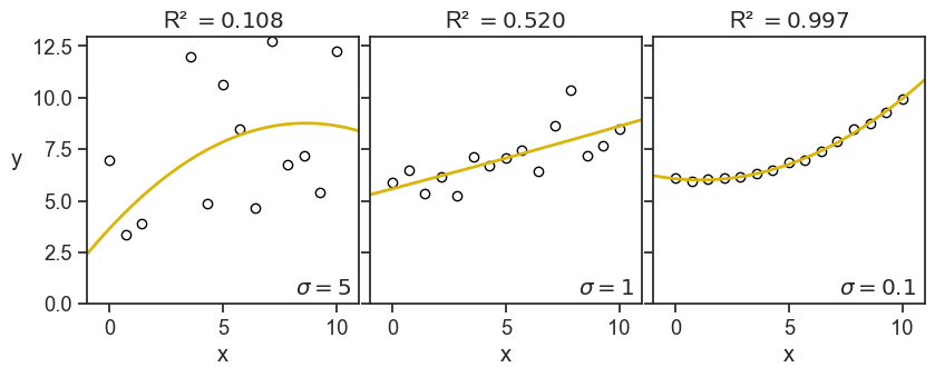 ax[2].plot(x, y3, "o", mfc="None", mec="black", label="data")