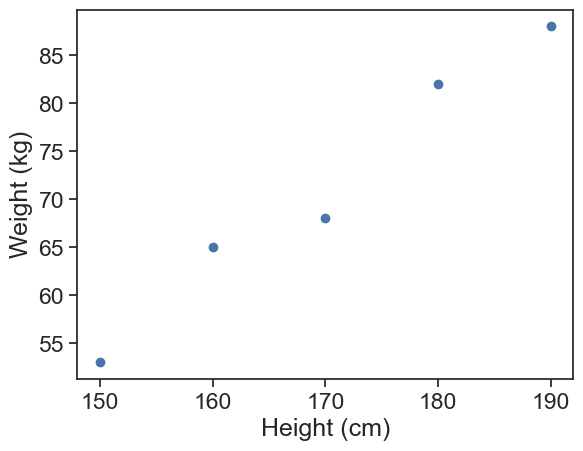 Let’s say I want to predict the weight of a person based on their height. I have the following data: