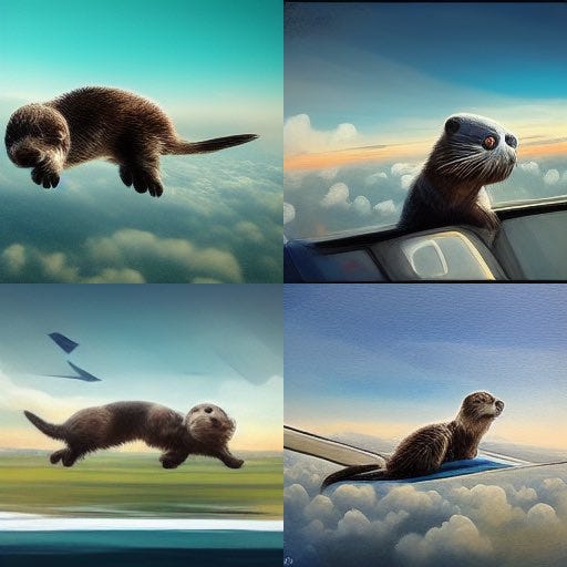 “Otter on a plane using wifi”, November 2022